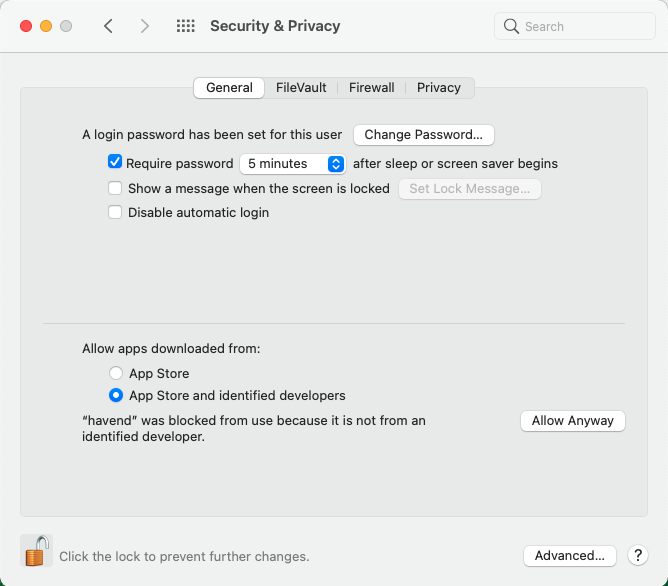 Note if you’re on a mac you will need to allow the daemon to run in System > Security & Privacy, after the first run you can allow it via the Allow button.